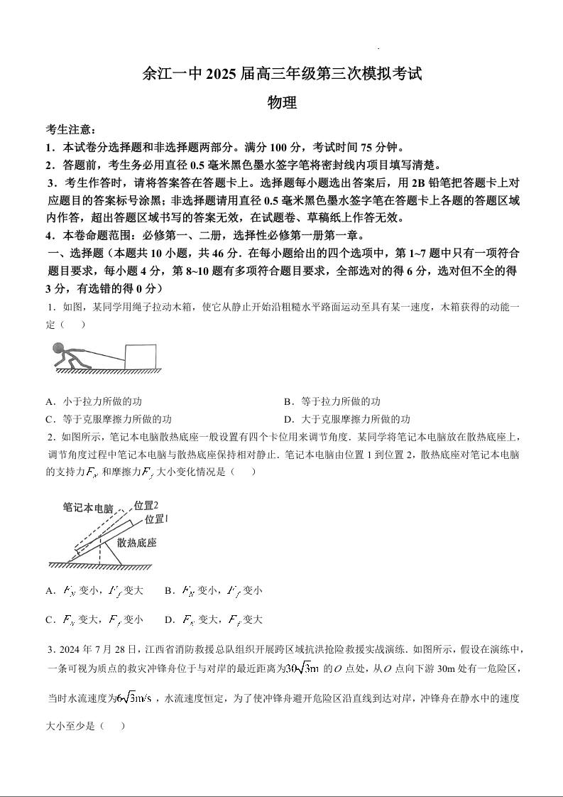 江西省鹰潭市余江区第一中学2025届高三上学期11月期中考试物理+答案