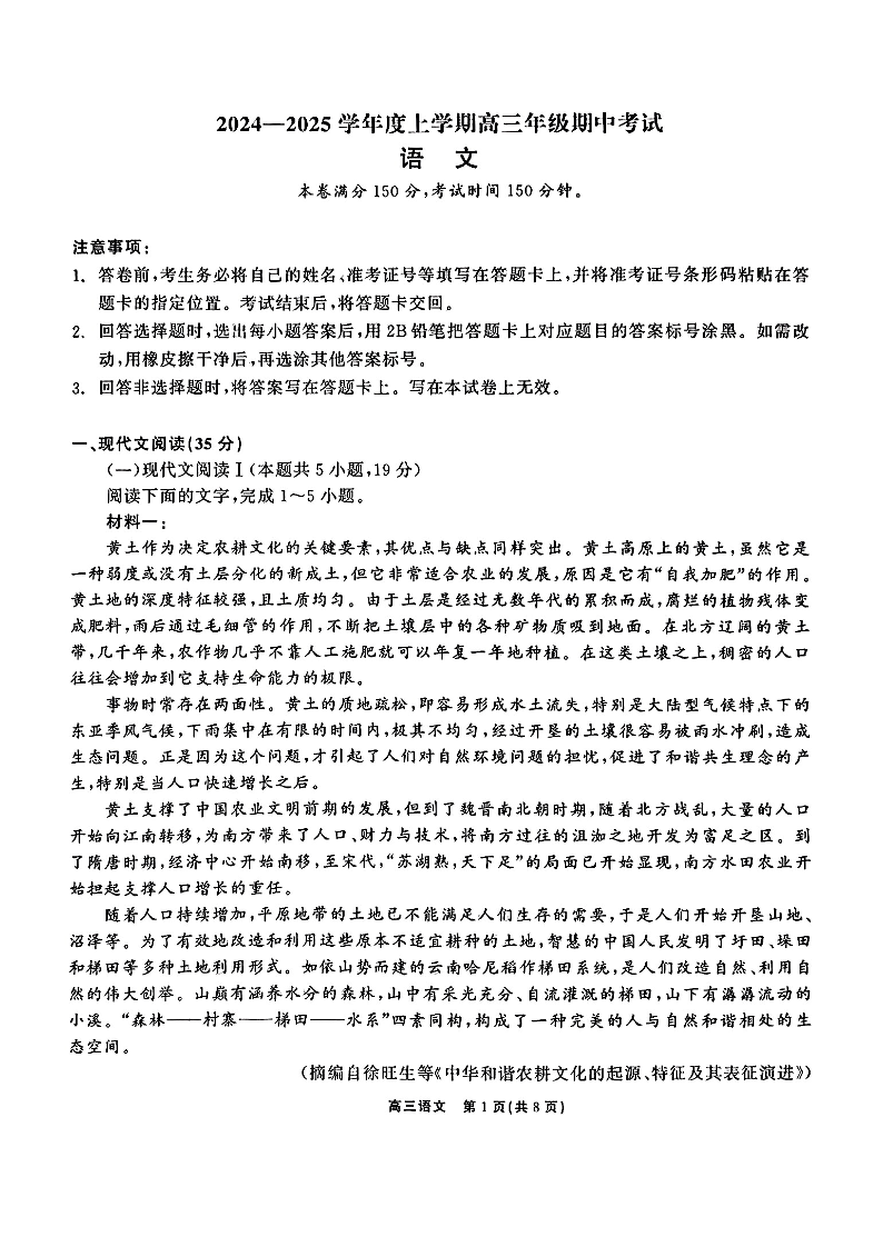 辽宁省点石联考(辽宁县级协作体)2025届上学期高三年级期中考试语文+答案