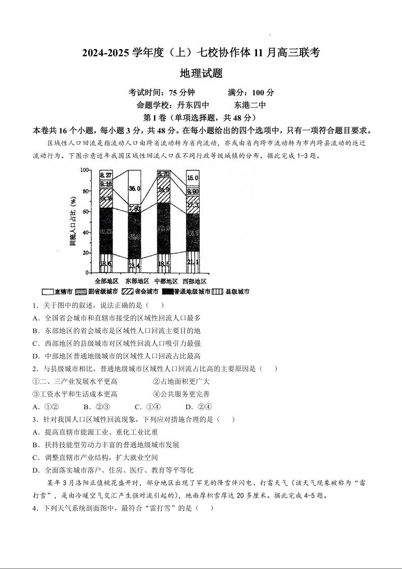 辽宁省七校协作体2025届高三上学期11月期中考试地理+答案