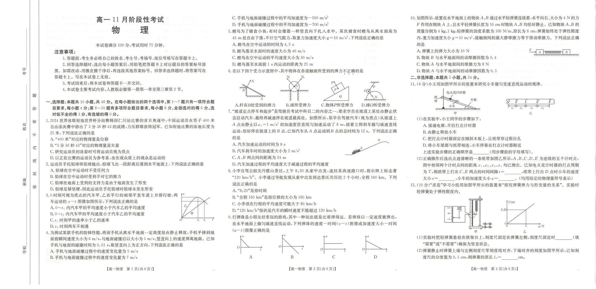 广西区域名校2024-2025学年高一上学期11月期中阶段性考试物理