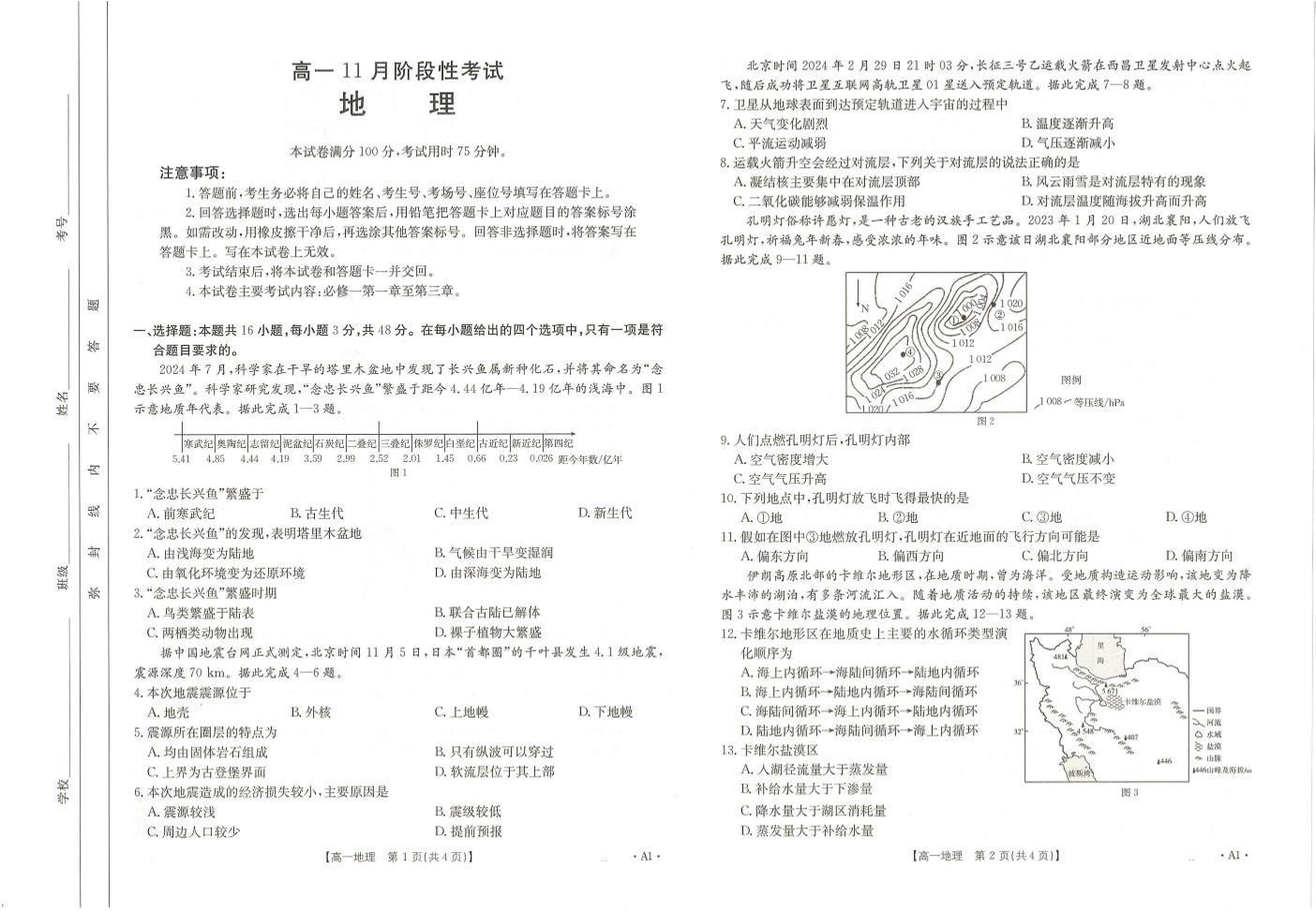 广西区域名校2024-2025学年高一上学期11月期中阶段性考试地理