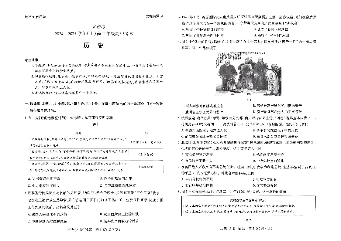河南省区域高中大联考2024-2025学年高二上学期11月期中考试历史