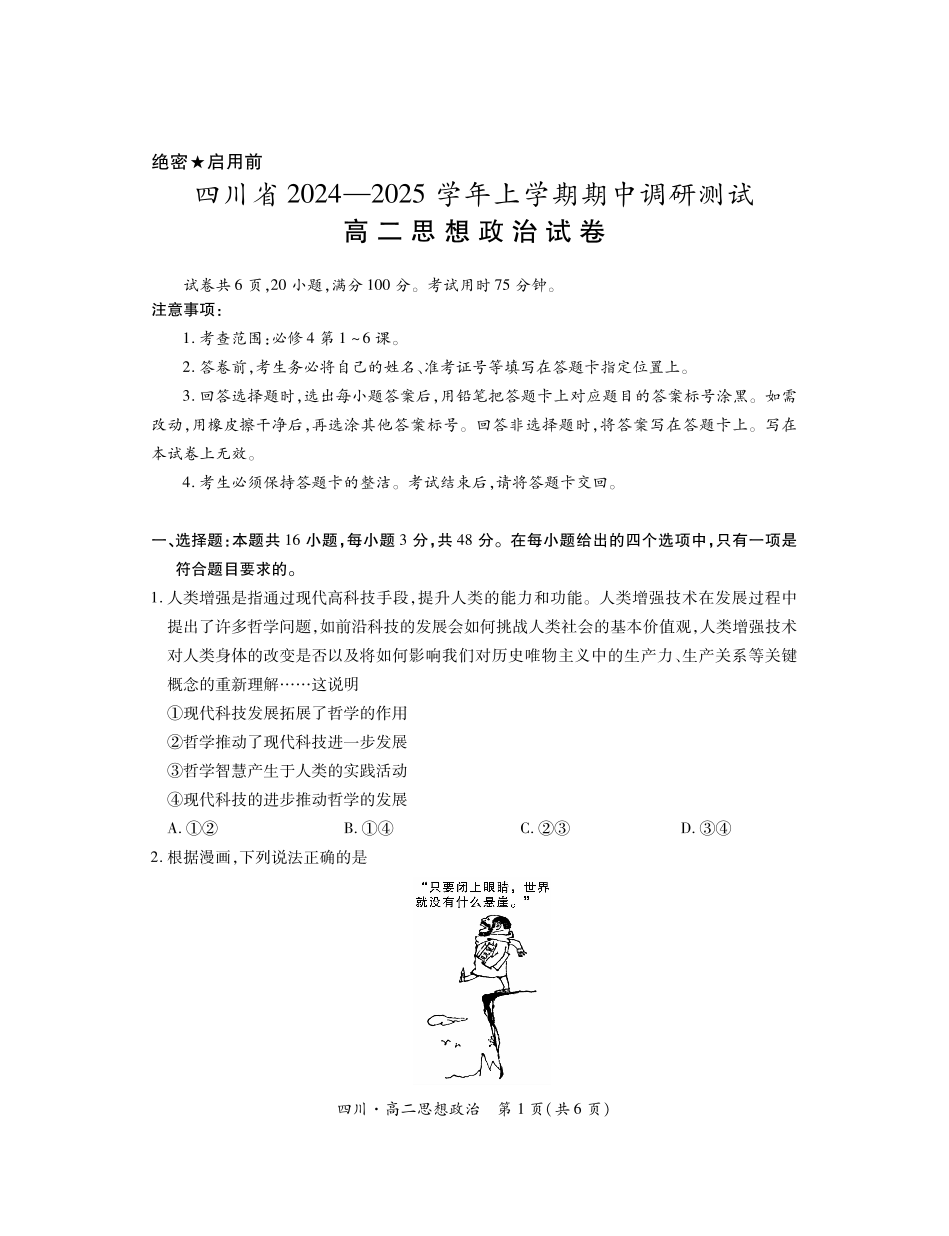 四川省2024-2025学年高二上学期期中调研测试政治+答案