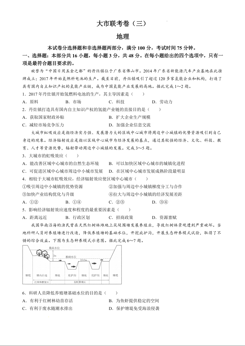 陕西省汉中市2025届高三上学期联考(三)(11月期中)地理+答案