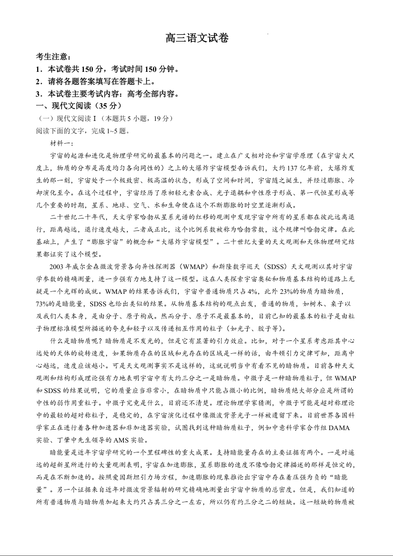 陕西省区域2025届高三上学期11月期中考试语文+答案