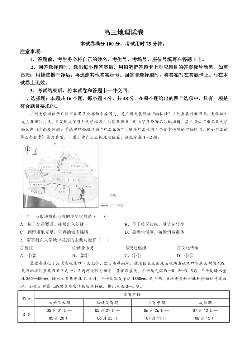 陕西省区域2025届高三上学期11月期中考试地理+答案