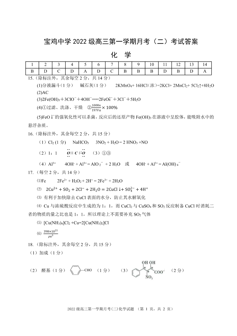 陕西省西安市2025届高三上学期11月联考一模化学答案