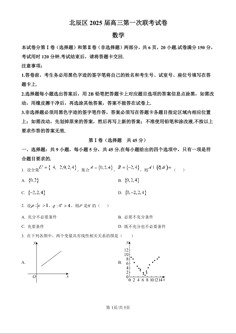 天津市北辰区2025届高三上学期11月期中考试数学(原卷版)