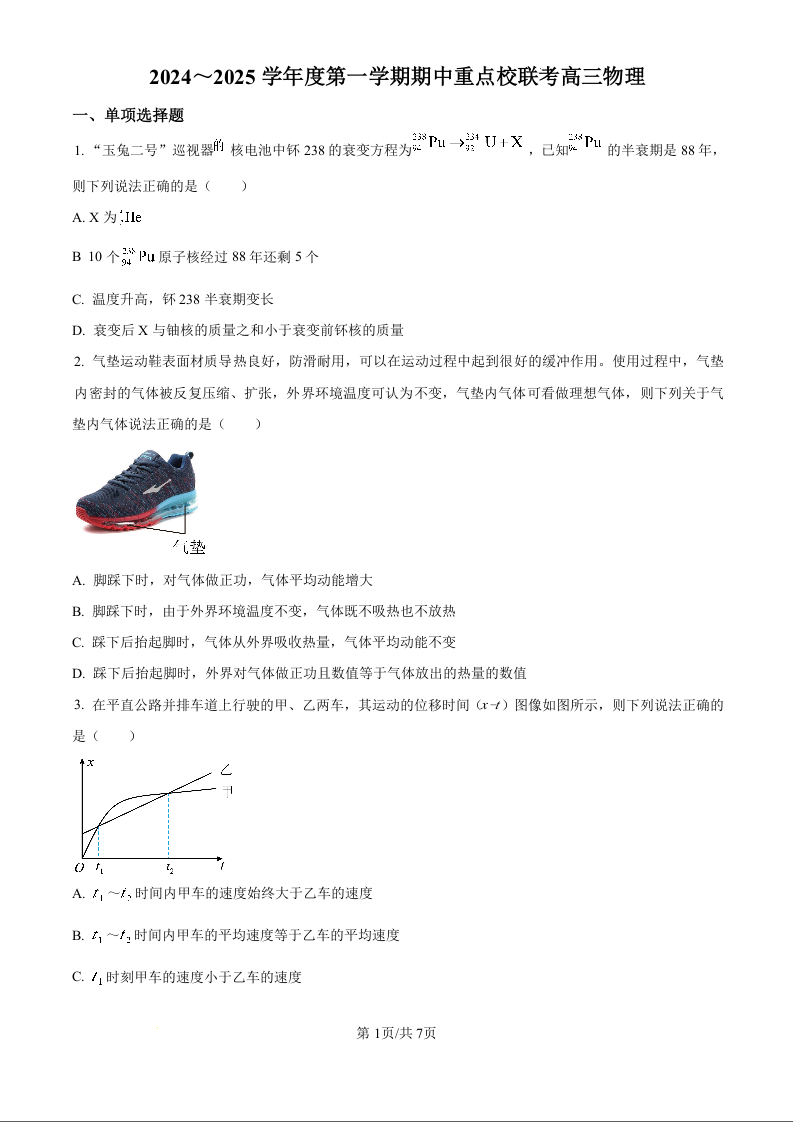 天津市五区县重点校联考2025届高三上学期11月期中考试物理(原卷版)