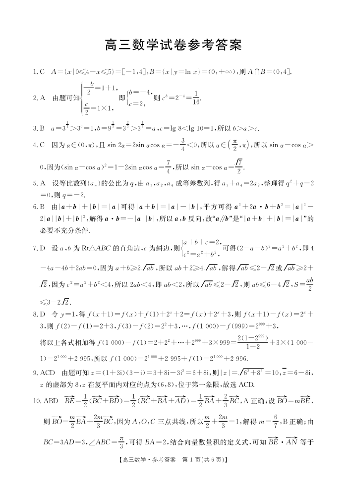 新疆维吾尔自治区片区2025届高三10月联考数学答案