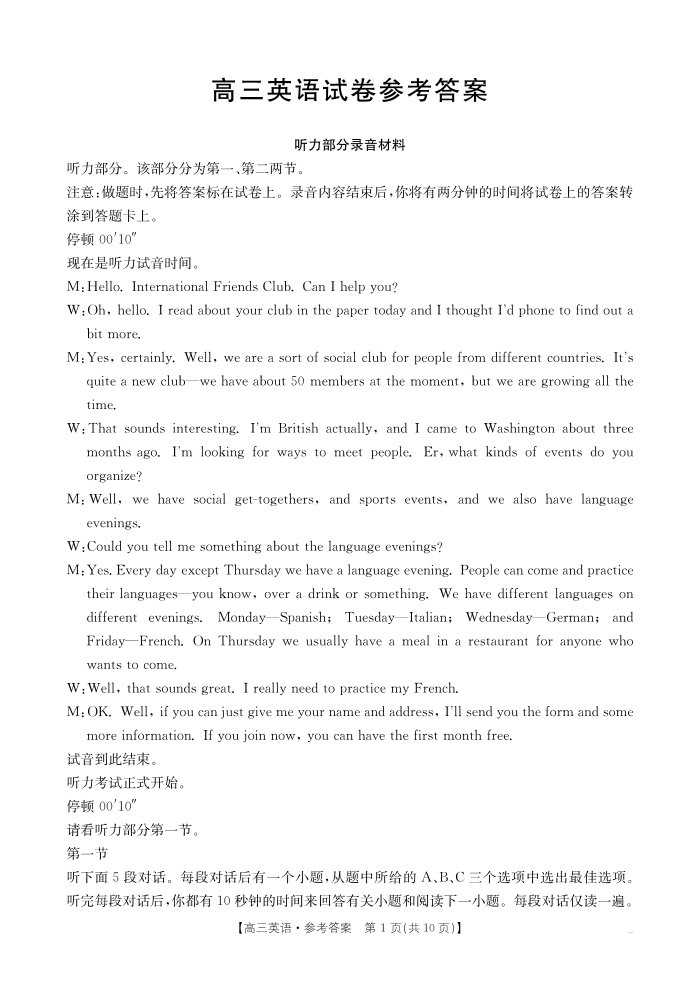 新疆维吾尔自治区片区2025届高三10月联考英语答案