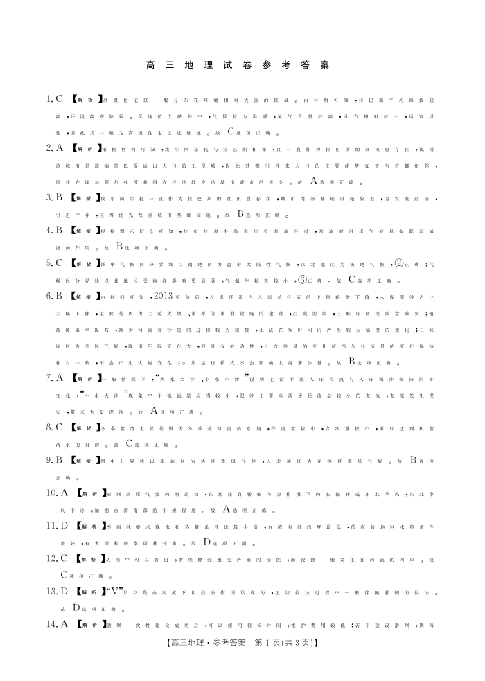 新疆维吾尔自治区片区2025届高三10月联考地理答案
