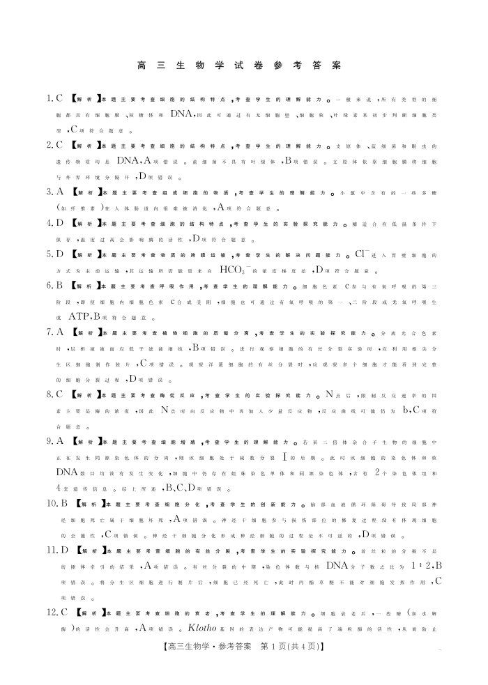 新疆维吾尔自治区片区2025届高三10月联考生物答案