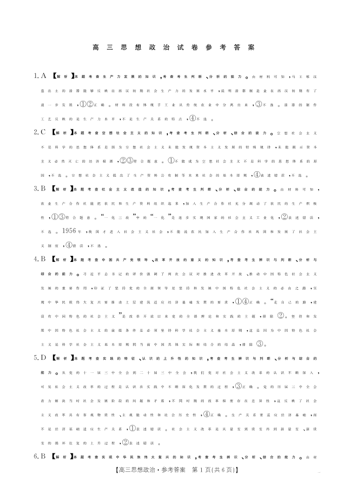 新疆维吾尔自治区片区2025届高三10月联考政治答案