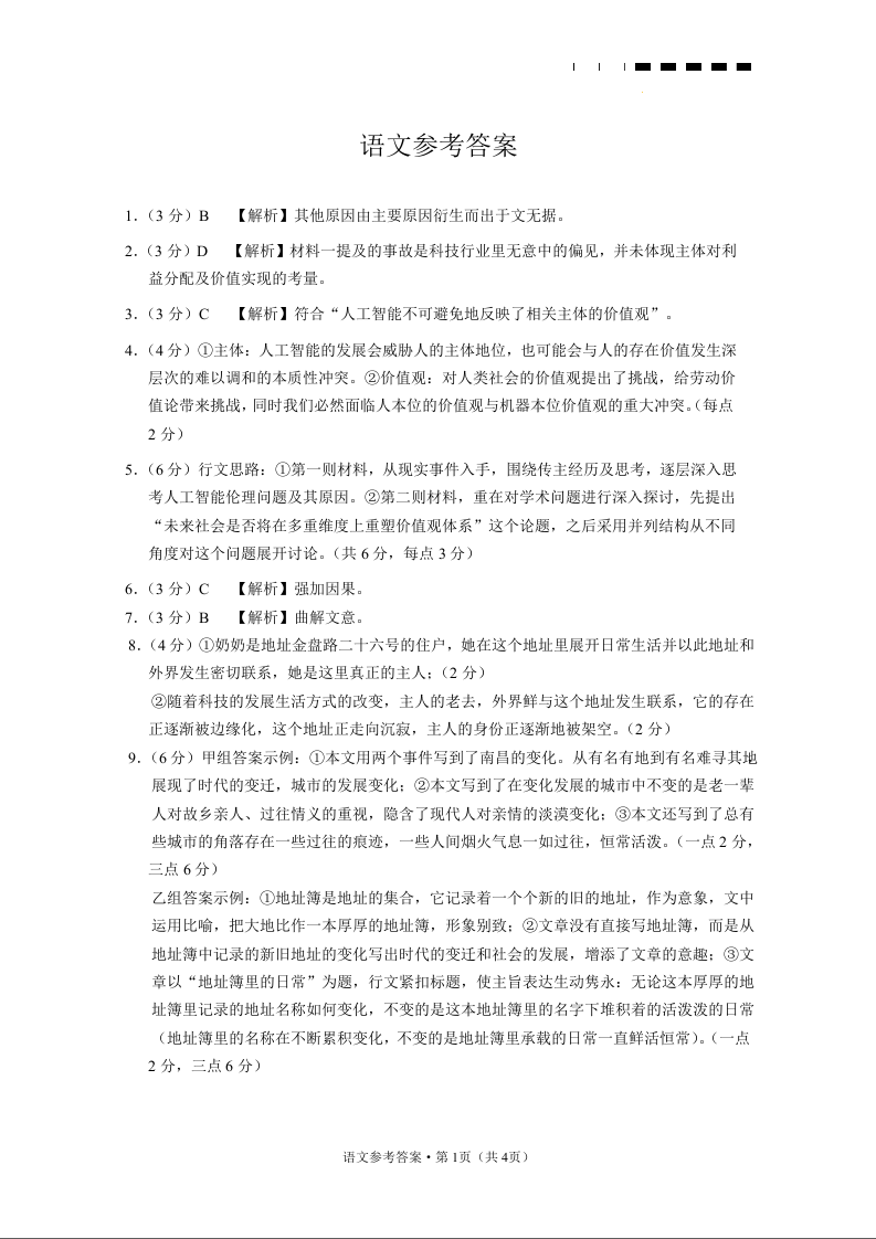 云南师范大学附属中学2025届高三高考适应性月考卷(五)语文答案