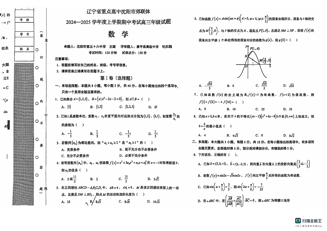 辽宁省沈阳市郊联体2025届上学期11月期中期中考试数学