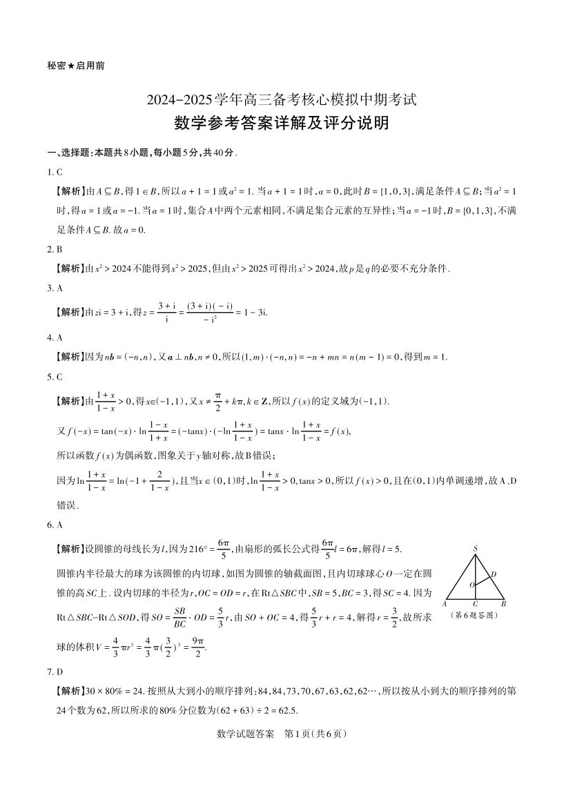 山西省思而行2025届高三备考核心模拟中期考试数学答案