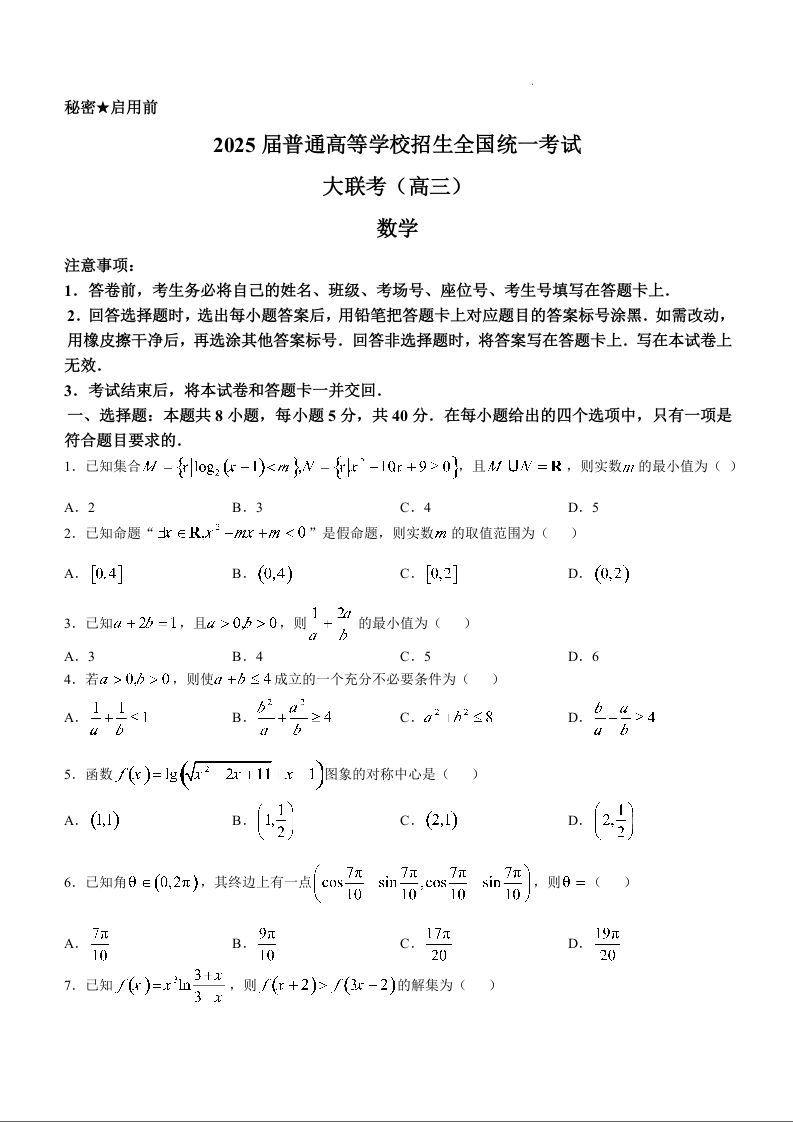 河南省部分重点高中2025届高三年级11月大联考数学