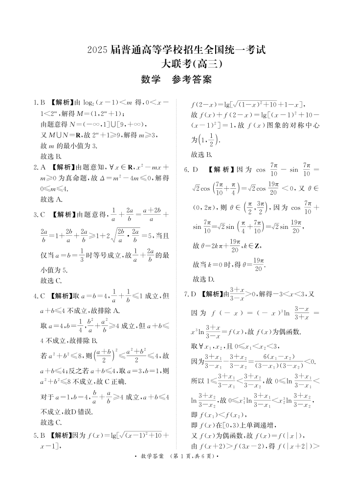 河南省部分重点高中2025届高三年级11月大联考数学答案