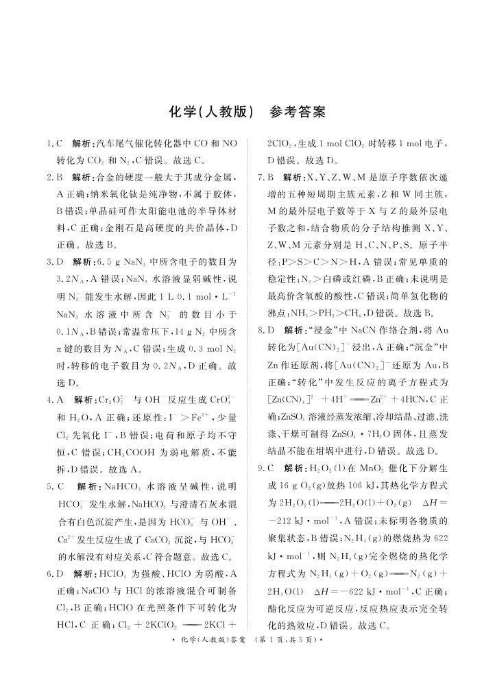河南省部分重点高中2025届高三年级11月大联考化学答案