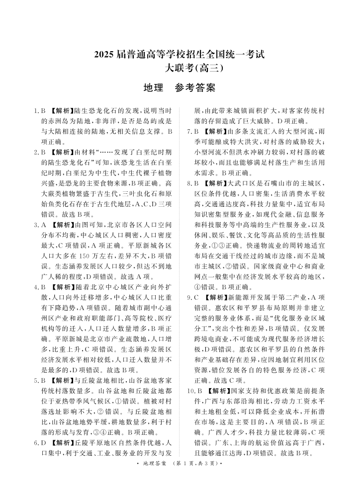河南省部分重点高中2025届高三年级11月大联考地理答案