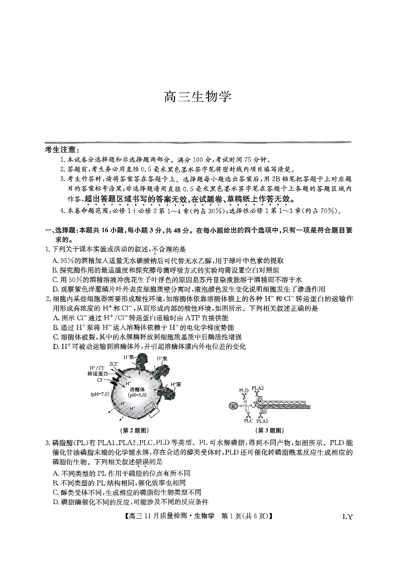 河南省区域高中2025届高三年级11月质量检测(九师联盟)生物