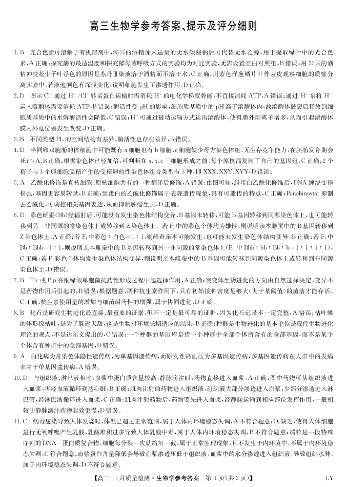 河南省区域高中2025届高三年级11月质量检测(九师联盟)生物答案