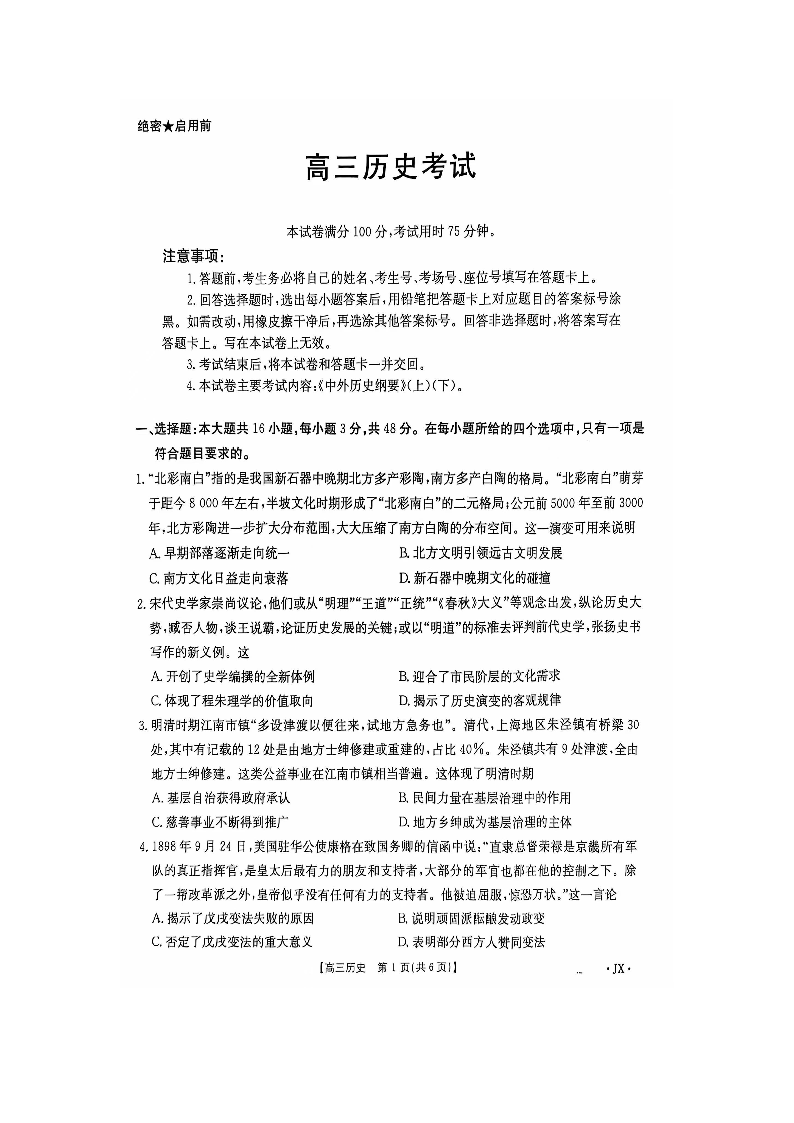 河南省驻马店市2024.11高三年级上学期期中考试历史+答案