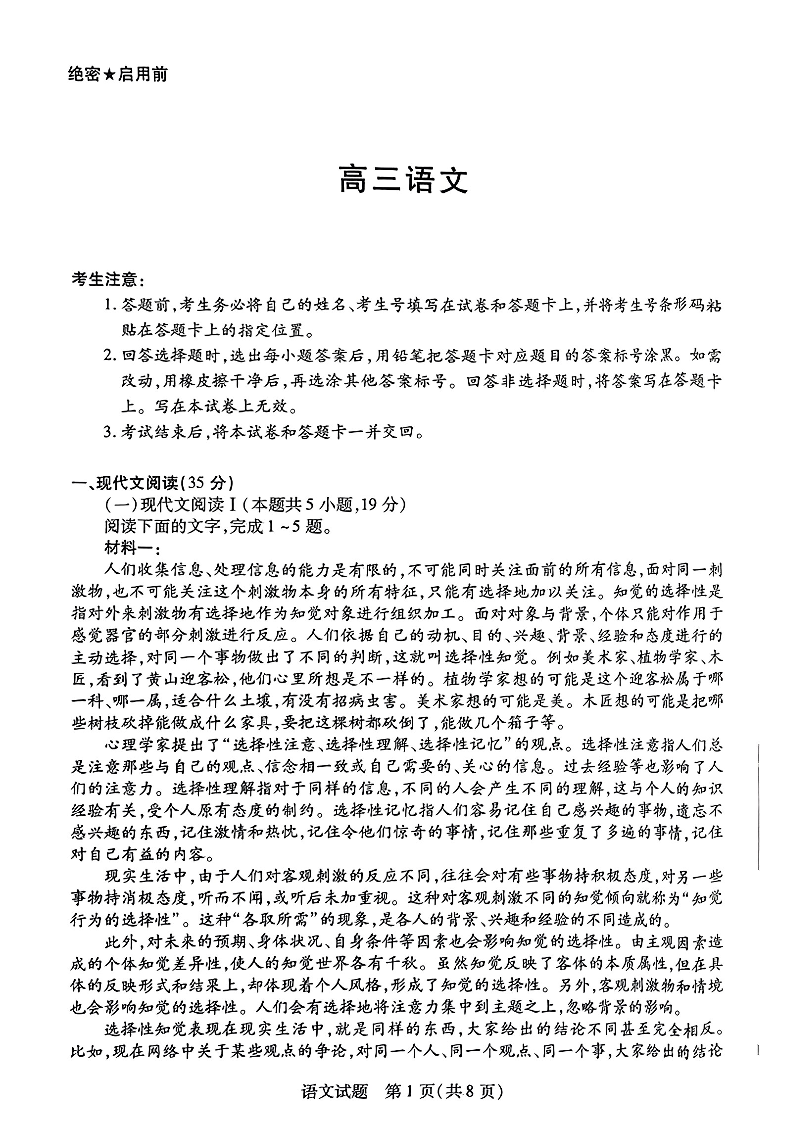 湖南省湘一名校联盟2025届高三11月联考联评语文