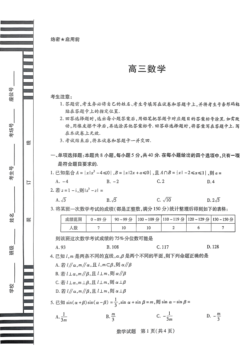 湖南省湘一名校联盟2025届高三11月联考联评数学