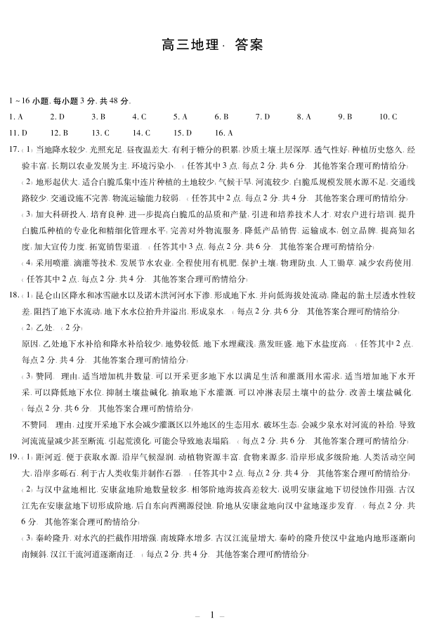 湖南省湘一名校联盟2025届高三11月联考联评地理答案