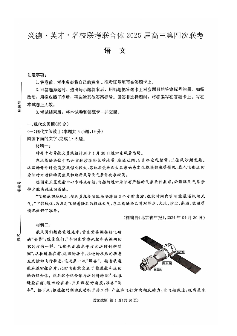 湖南省炎德英才名校联考联合体2025届高三第四次联考语文答案