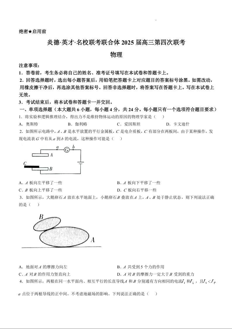 湖南省炎德英才名校联考联合体2025届高三第四次联考物理