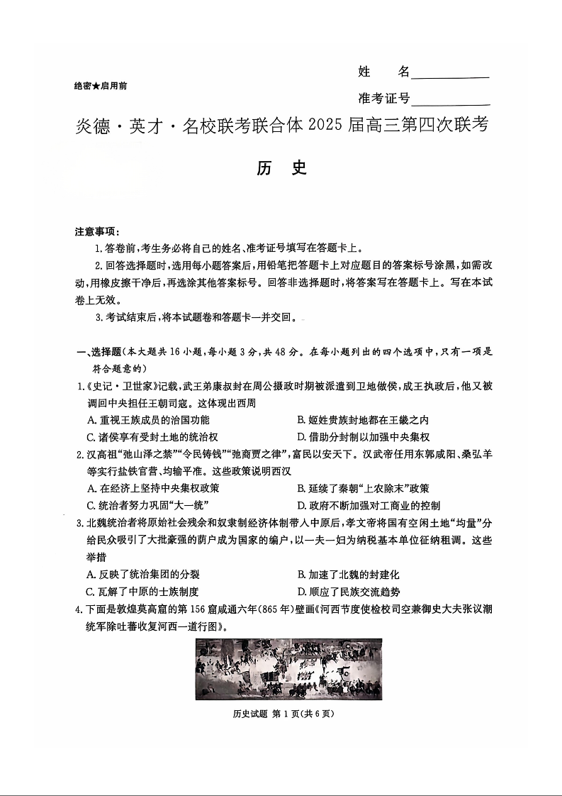 湖南省炎德英才名校联考联合体2025届高三第四次联考历史