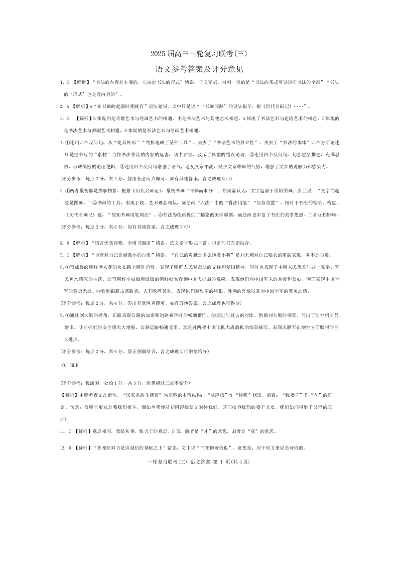 福建省部分学校2025 届高三一轮复习期中联考(三)语文答案