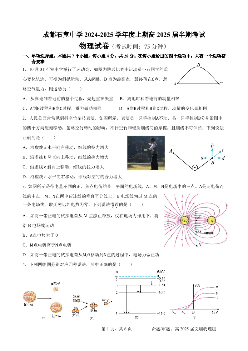 四川省成都市石室中学2024-2025学年高三上学期期中考试物理