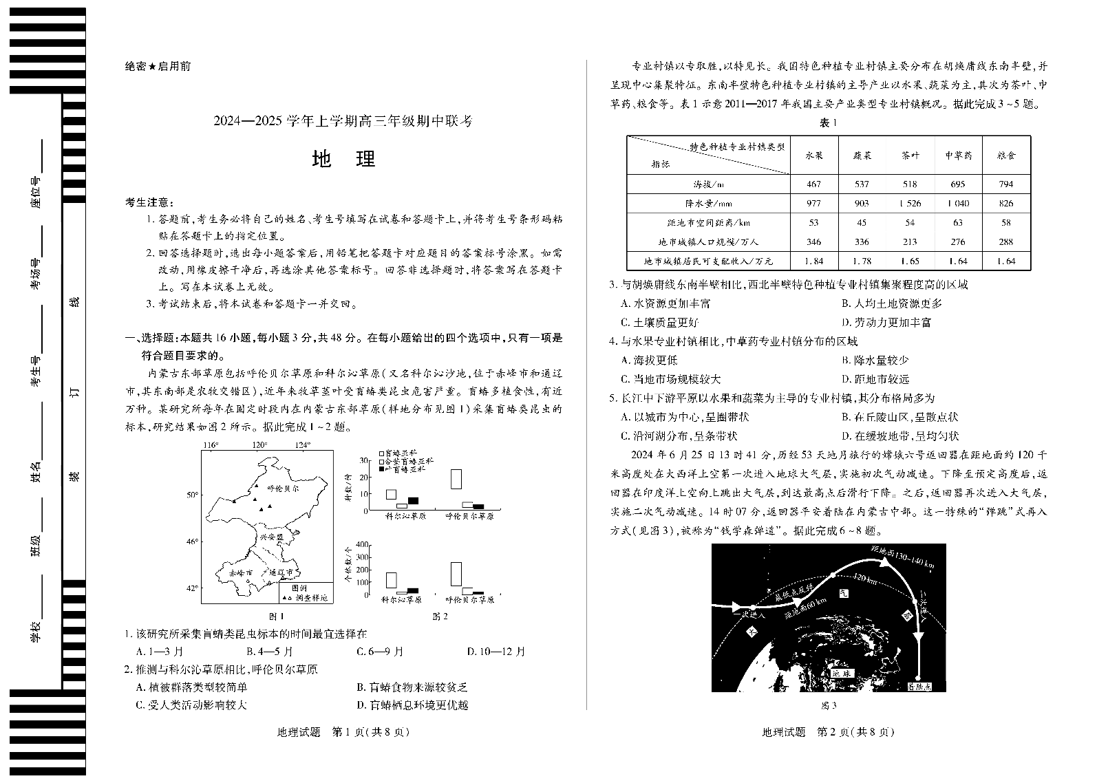 安徽省卓越县中联盟2025届高三11月期中考试地理+答案