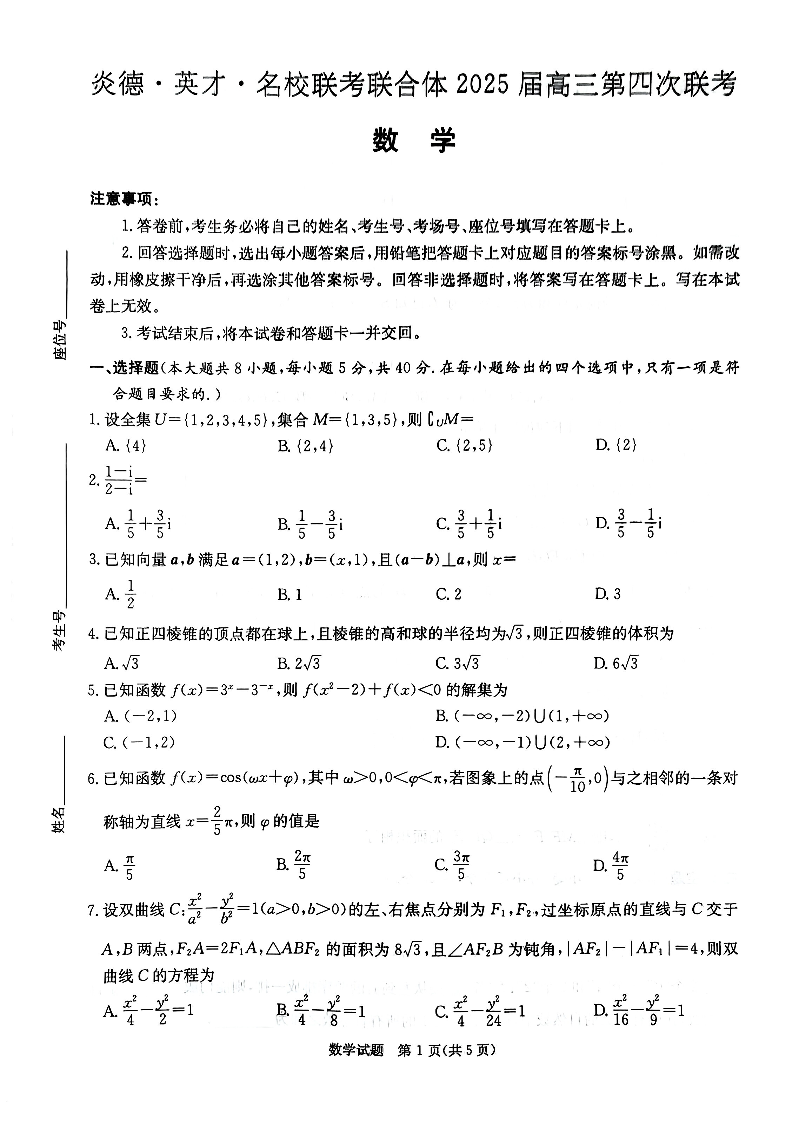 湖南省炎德英才名校联考联合体2025届高三第四次联考数学