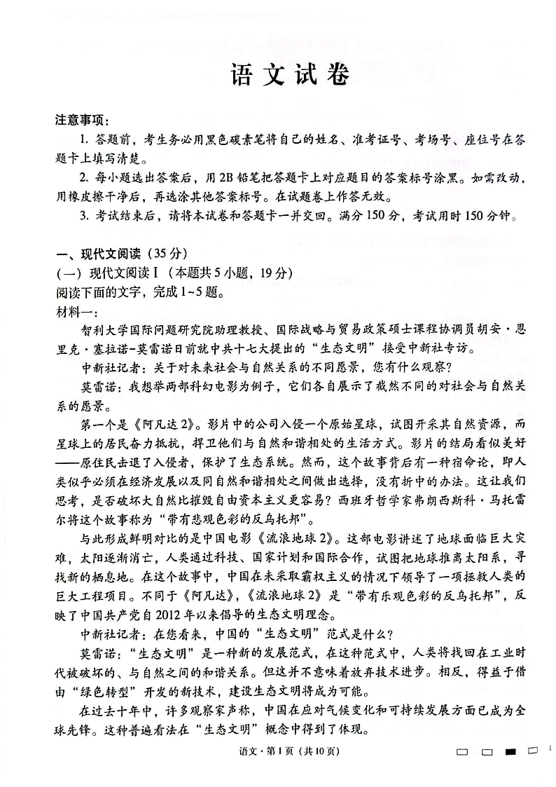 云南师范大学附属中学2025届高三高考适应性月考卷(六)语文