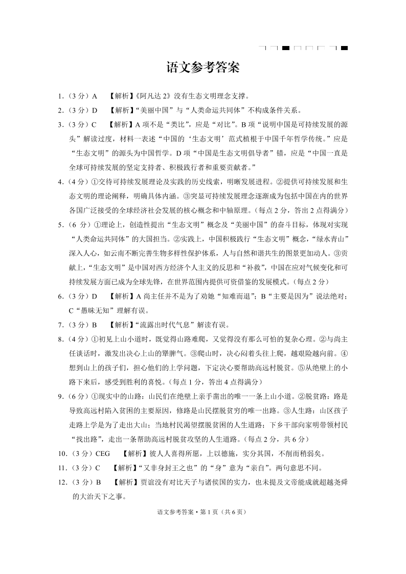 云南师范大学附属中学2025届高三高考适应性月考卷(六)语文答案