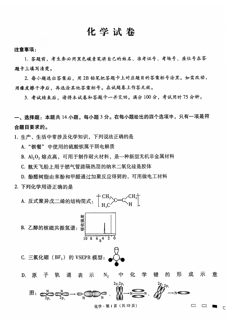 云南师范大学附属中学2025届高三高考适应性月考卷(六)化学