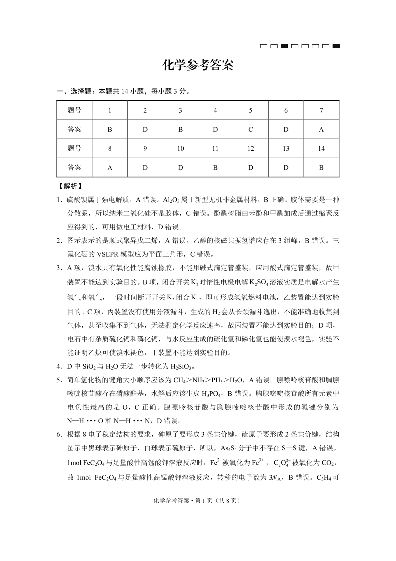云南师范大学附属中学2025届高三高考适应性月考卷(六)化学答案