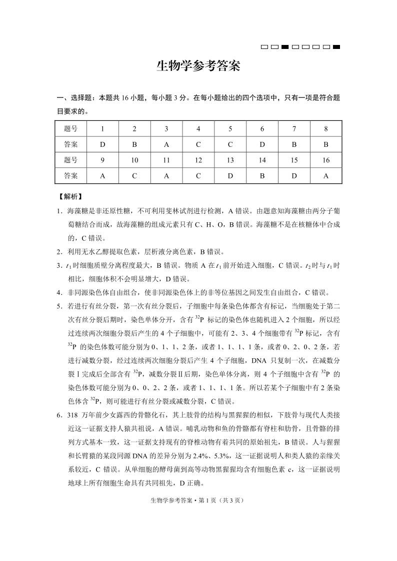 云南师范大学附属中学2025届高三高考适应性月考卷(六)生物答案