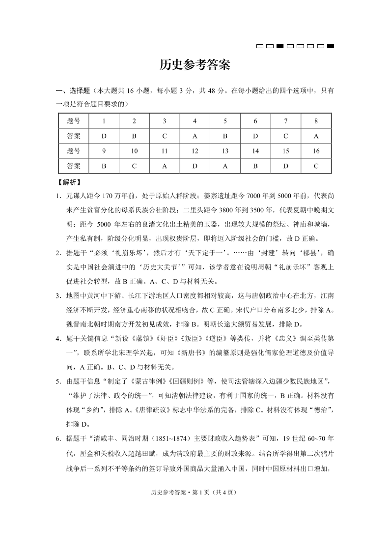 云南师范大学附属中学2025届高三高考适应性月考卷(六)历史答案