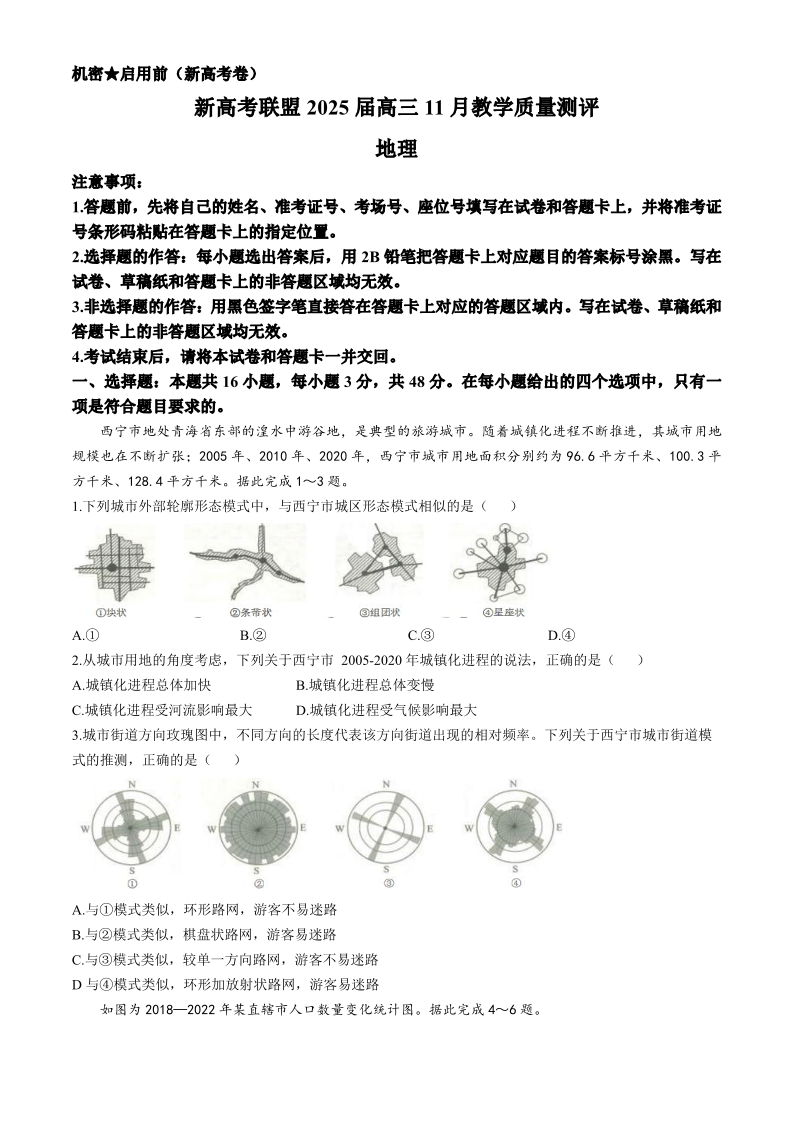 湖北省华大新高考联盟2025届高三11月教学质量测评地理