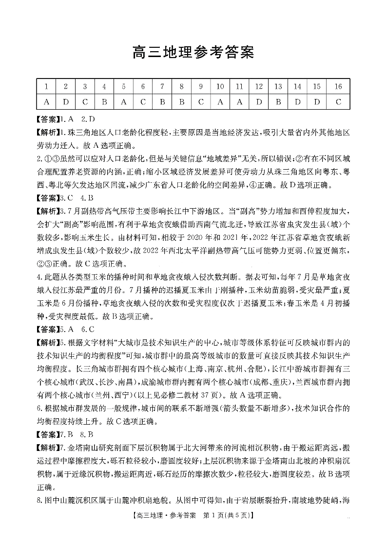广东省部分高中学校2024-2025学年高三上学期11月期中地理答案