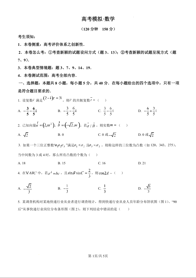 甘肃省2025届高三上学期高考模拟金卷(11月月考)数学(原卷版)