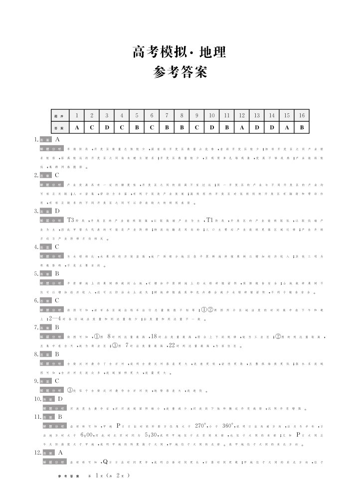 甘肃省2025届高三上学期高考模拟金卷(11月月考)地理答案