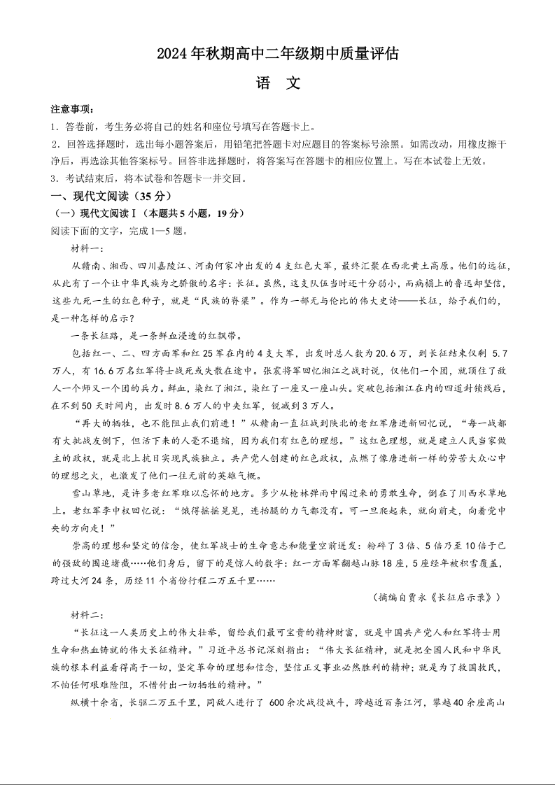 河南省南阳市2024-2025学年高二上学期11月期中考试语文