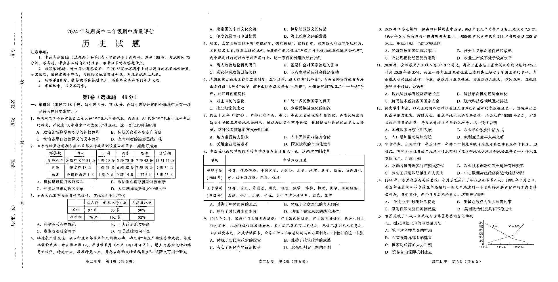 河南省南阳市2024-2025学年高二上学期11月期中考试历史